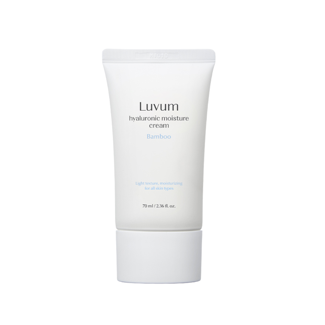 Vi anbefaler å se etter fuktighetskrem med hyaluronsyre som bidrar til at huden holder på mer fuktighet og vann. Luvum Bamboo Hyaluron fuktighetskrem er en lett krem som gir rikelig med fuktighet til dehydrert hud.